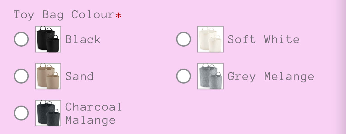 1 personalised small toy bag (£2 extra for medium)